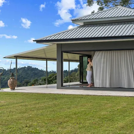 The 6-bedroom Panorama Farm - Sunshine Coast Hinterland Villa Bald Knob offers proximity to nearby tourist spots, such as the botanical garden "Mary Cairncross Scenic Reserve", situated 3.1 km away. The villa includes a car park and a patio with views of the mountain.